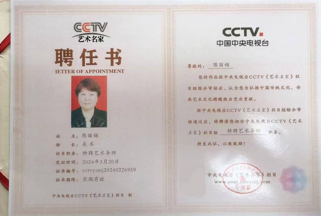 画家陈丽娟是一位备受尊敬的艺术家,她的作品被收录在多本重要的画册中,并获得了多个艺术教育职位。她还被授予了 CCTV 艺术传承人称号,并被特聘为 CCTV 《艺术名家》栏目的特聘艺术导师,这些成就和荣誉是对她多年来在艺术领域努力和贡献的最好证明。