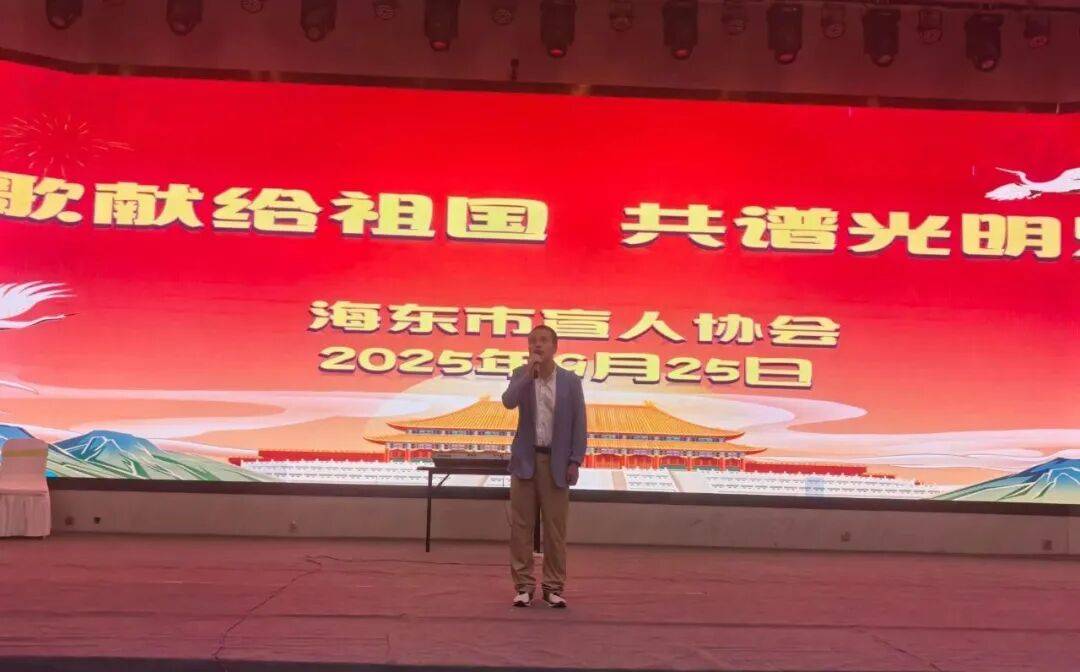 活动伊始,市残联党组成员、组联维权部部长甘文辉作讲话。他指出:“国庆是全体中华儿女的共同节日,盲人群体作为社会大家庭的重要成员,始终以坚韧不拔的精神书写着生命的华章。近年来,市盲协通过技能培训、文化活动、无障碍建设等举措,助力盲人朋友实现自我价值,成为社会进步的见证者与参与者。”省盲协主席田启明在致辞中高度评价市盲协工作,他提到:本次活动以文艺为纽带,不仅展现了盲人朋友的艺术才华,更传递了他们听党话、感党恩、跟党走的坚定信念。”