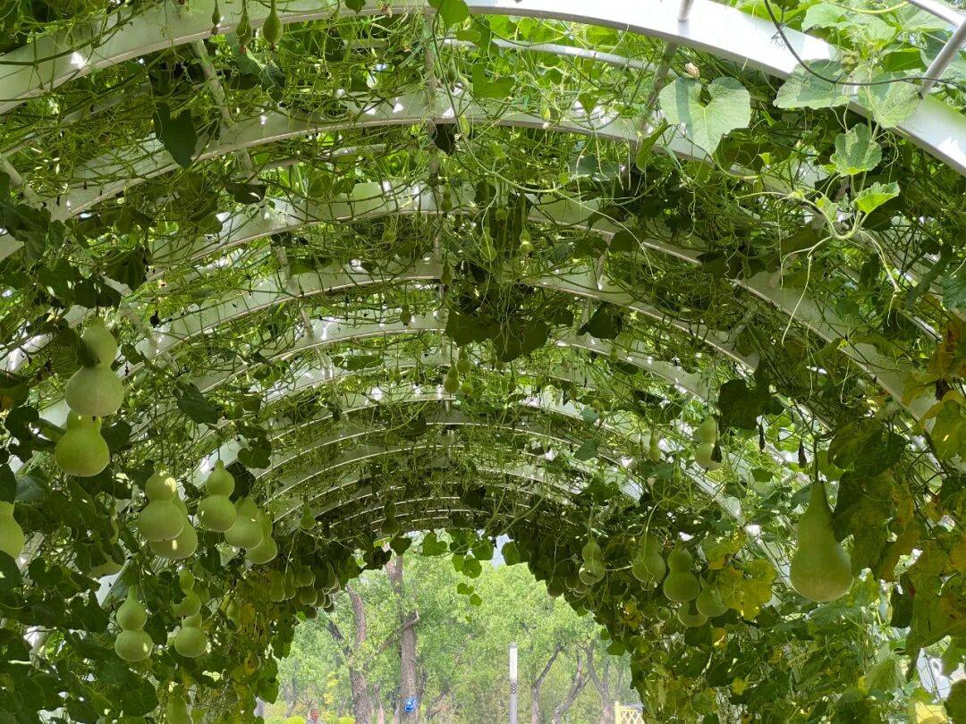 千百年来,葫芦作为一种吉祥物和观赏品,一直受到人们的喜爱和珍藏,形成了源远流长的葫芦文化。它不仅仅是自然瓜果,更是中华吉祥文化的代表象征。葫芦谐音“福禄”,人们认为它可以祈求幸福;葫芦的蔓与“万”同音,每个成熟的葫芦里葫芦籽众多,人们就联想到“子孙万代,繁茂吉祥”。在园艺小镇葫芦长廊,游客们可以漫步在葫芦藤下,欣赏形态各异的葫芦,感受葫芦文化的独特魅力。还可以亲手采摘自己心仪的葫芦,把它带回家,作为这个双节最特别的纪念。
